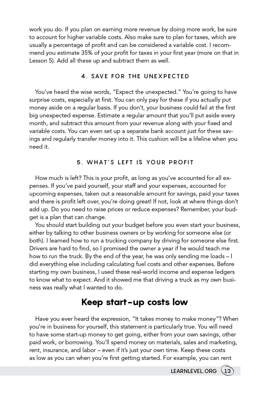 I have been looking at owning a business when I get out . This guide with stay with me forever, at least my first two years running my business. Learning how to project, analyze and make smart money decisions will be key. The information in this guide is really great - clear, concrete and concise.